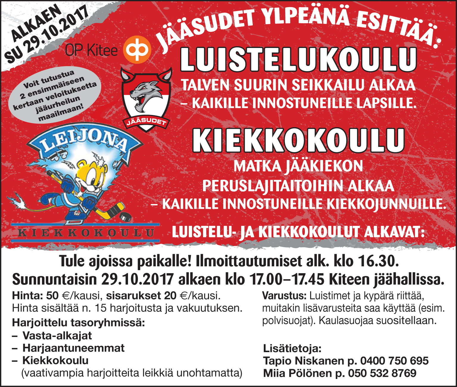 Jääsusien luistelu- ja kiekkokoulut alkavat!