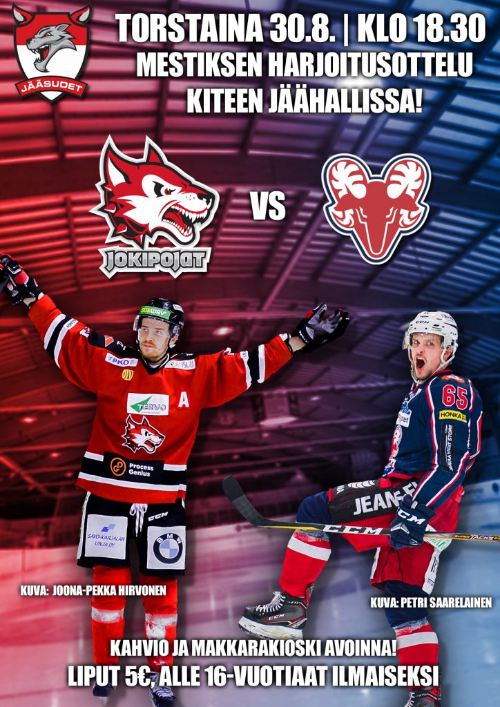 Kiteen Jääsudet järjestävät Mestiksen harjoitusottelun, jossa kohtaavat viime vuoden pronssiottelupari Joensuun Jokipojat sekä Savonlinnan Pallokerho!