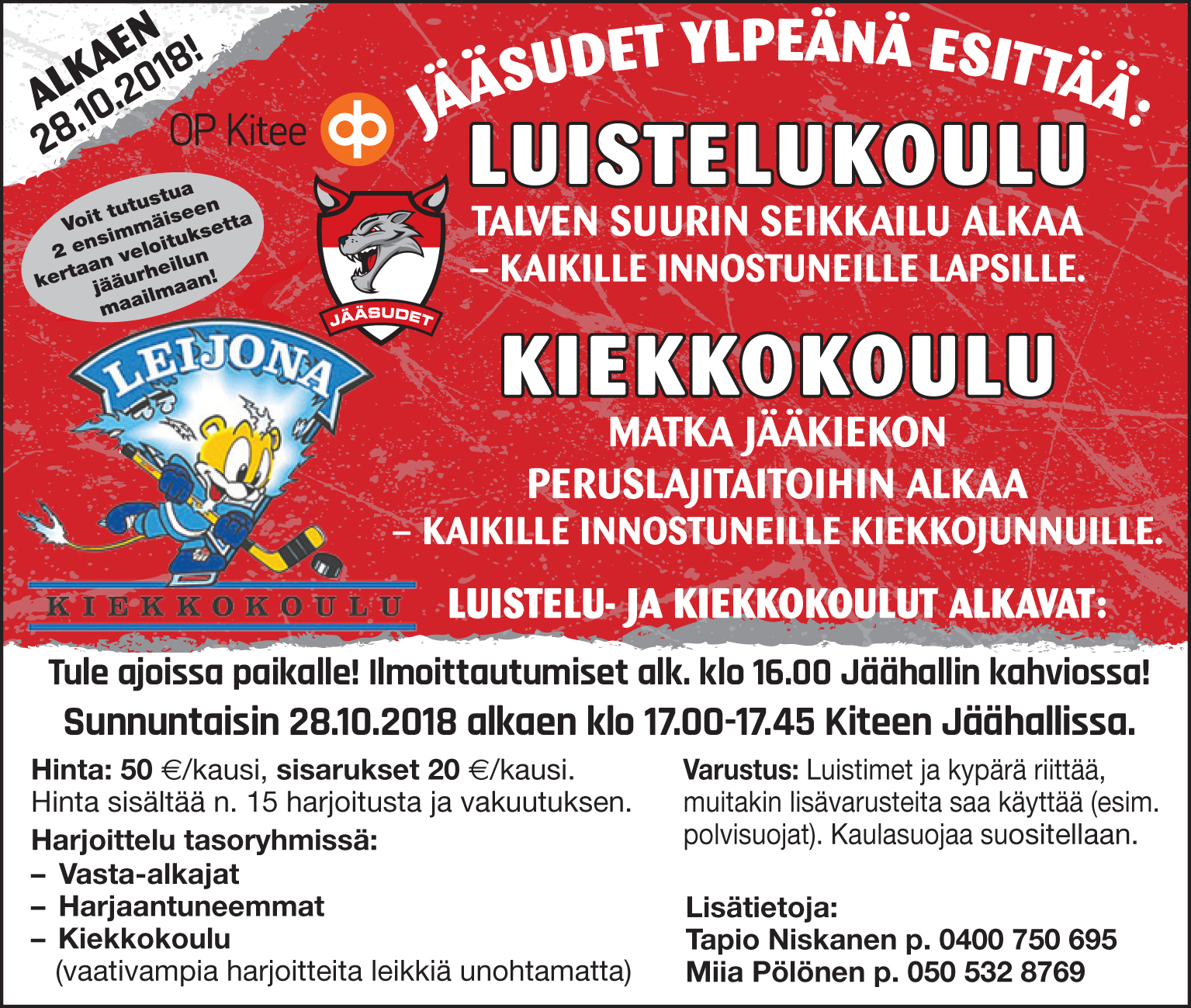 Jääsusien luistelu- ja kiekkokoulu alkaa jälleen 28.10.2018!